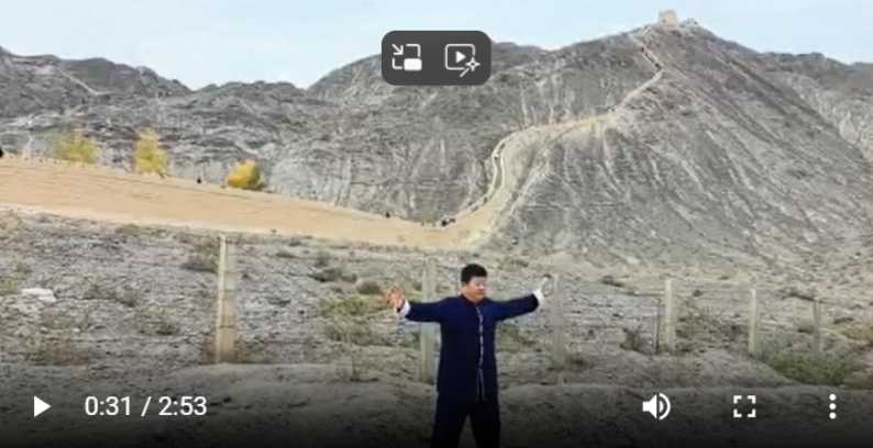 丁先生在嘉峪关长城练习太极,参与“太极巡礼·点亮地标”活动(视频截图)