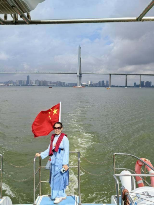 高原红(化名)在湛江海湾大桥参与“太极巡礼·点亮地标”活动(受访者供图)